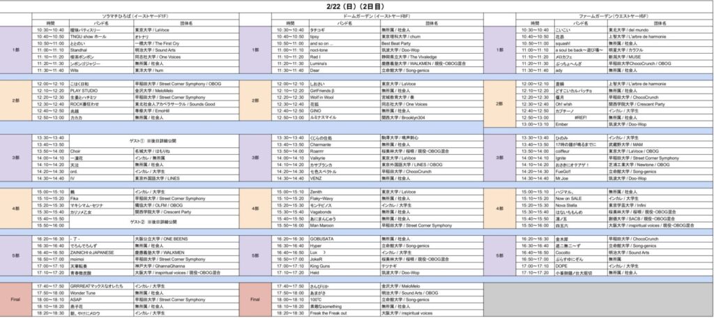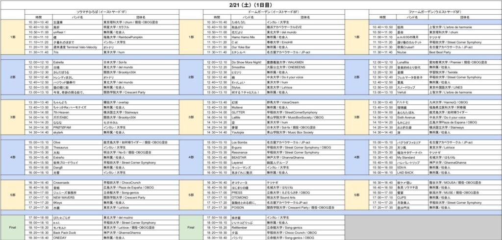 タイムテーブル | ソラマチアカペラストリート2025皆様のご来場、心よりお待ちしております☺️